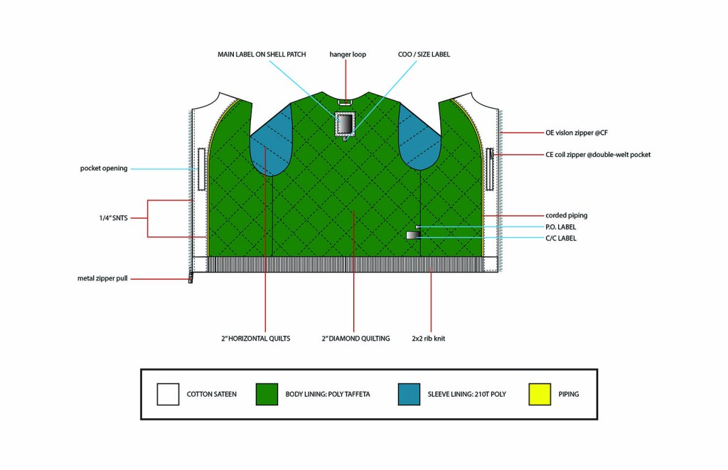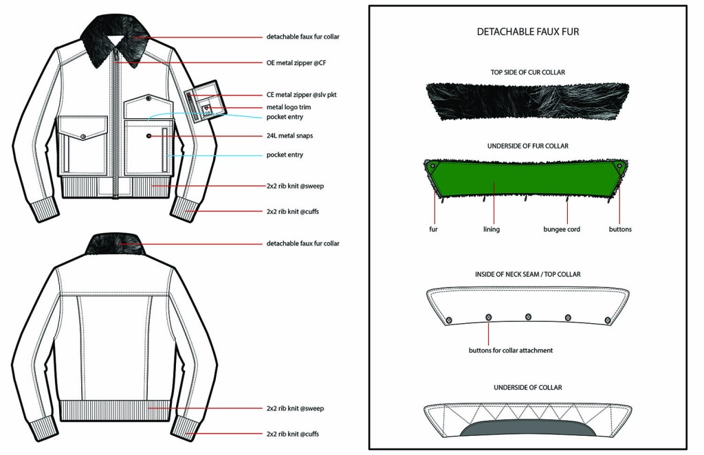 Example tears from an outerwear techpack I’ve done.